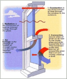 Windows lose and gain heat by conduction, convection, radiation and air leakage. This heat transfer is expressed with U-values, or U-factors. U-values are the mathematical inverse of R-values. So an R-value of 2 equals a U-value of 1/2, or 0.5. Unlike R-values, lower U-value indicates higher insulating value.